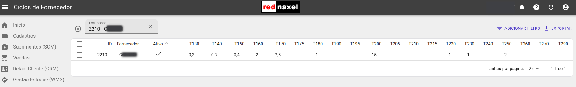 Ciclo de Fornecedor (Filtro por Fornecedor)