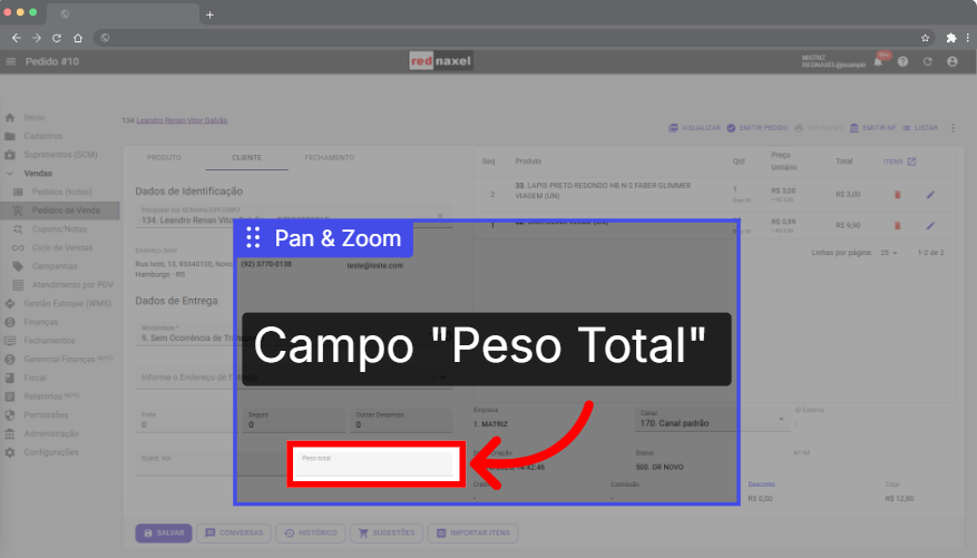 Importante: Caso alguma dessas informações esteja incorreta, retorne ao cadastro do cliente e faça as correções necessárias, pois esses dados são obrigatórios para a emissão da nota fiscal. Após realizar os ajustes, basta retornar ao pedido e as informações já estarão atualizadas automaticamente.
