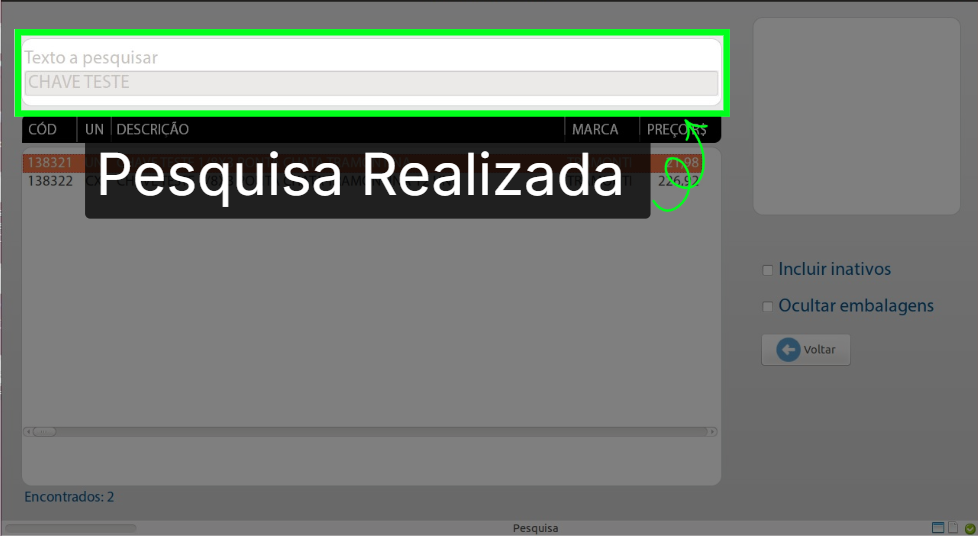 6. PDV >>> Tela Pesquisa de Produto >>> Exemplo "Retorno da Pesquisa":