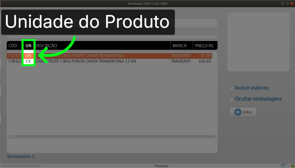8. PDV >>> Tela Pesquisa de Produto >>> Coluna "UN":